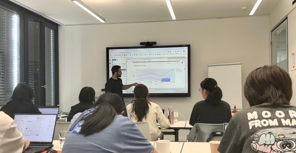 开启第一周的课程,我便感受到了措手不及。课程难度远超预期,本以为入门课会从基础概念循序渐进,没想到老师直接切入了Python 领域的前沿技术方向,再加上全英文授课的形式,我瞬间倍感压力。课堂上遇到陌生的专业术语时,我只能频繁掏出手机逐词翻译,才能勉强跟上老师的讲解节奏。然而,老师的授课方式并非单向灌输理论,而是始终贯穿教学实践。每讲解完一部分核心内容,他都会立刻让我们动手敲写对应代码,上机调试。当我们遇到问题时,老师会逐个走到座位旁,针对代码里的逻辑漏洞或语法问题耐心拆解,帮我们理清思路。这种边学边练、即时答疑的教学方式,让我在压力中渐渐提升了代码能力。虽然这一周的实践学习在一开始让我有些不适应,但它也极大地激发了我的学习积极性和主动性,让我更加深入地理解和掌握了知识。随着课程推进,第二周的学习更偏向深度实战。基于上一周的积累,我已经能够跟上老师的课堂进度。在数据准备和数据清洗课上,面对一份满是异常值的用户行为数据,老师没有直接给出方案,而是现场编写了“删除异常值”“中位数填充”“插值法修正”三种代码,逐一运行对比效果,引导我们结合数据特点选择最优解,这让我对数据清洗的严谨性有了更深的理解。上课时遇到难点时,课后我会和同学一起对照老师的现场代码笔记复盘,再加上老师耐心地补充讲解,最终也顺利打通了思路。通过这一阶段的学习,我进一步感受到了德国大学教育注重培养学生独立思考和解决问题能力的特点。老师不会直接给出答案,而是通过引导和启发,让我们自己去思考和探索解决问题的方法。这不仅培养了我们的独立思考能力,也让我们学会了如何在面对复杂问题时,运用所学知识去分析和解决。