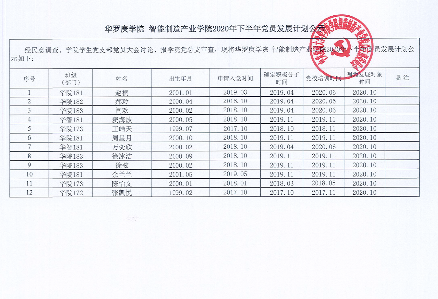 色情直播 智能制造产业学院2020年下半年党员发展计划公示