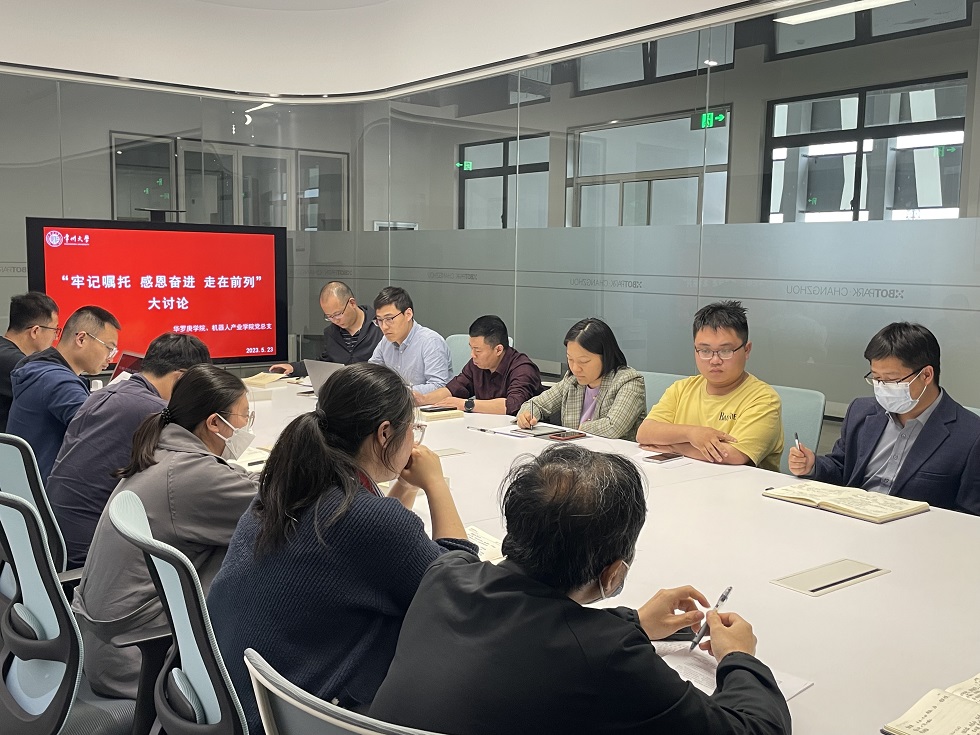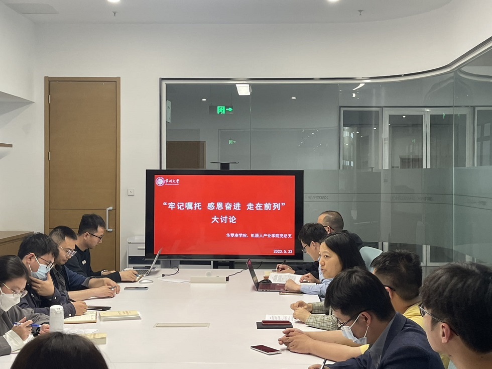 5月22日下午,色情直播 、机器人产业学院党总支开展“牢记嘱托、感恩奋进、走在前列”大讨论,深入学习贯彻习近平新时代中国特色社会主义思想,总结交流前一阶段学习和调研成果,努力以学铸魂、以学增智、以学正风、以学促干。会议由学院党总支书记宣慧主持,全体教师党员和部分学生党员代表参加讨论。