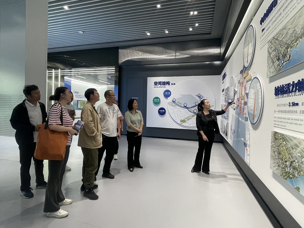 在展馆,大家通过动态影片、VR互动、升降立体沙盘、裸眼3D大屏等展示,更清晰直观地了解了“两湖”创新区的规划发展,领略了“两湖”创新区未来的美好蓝图。特别是规划中涉及学院人才培养及发展的相关产业规划等内容,更加激发了党员教师担当教育新使命的责任意识。