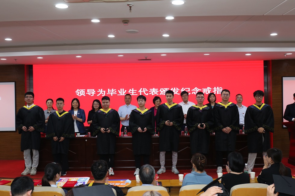 领导嘉宾为毕业生颁发荣誉证书、纪念戒指