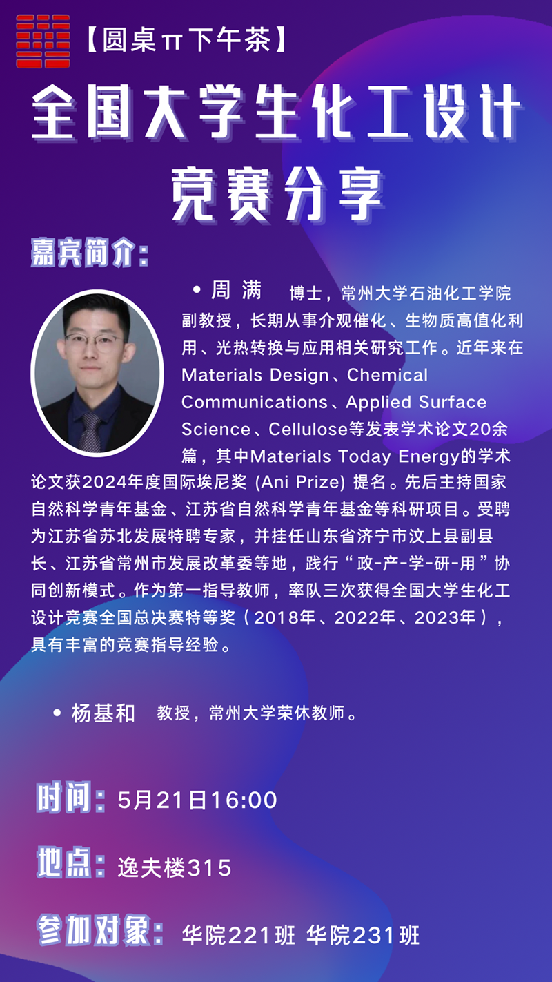 圆桌π下午茶:全国大学生化工设计竞赛分享