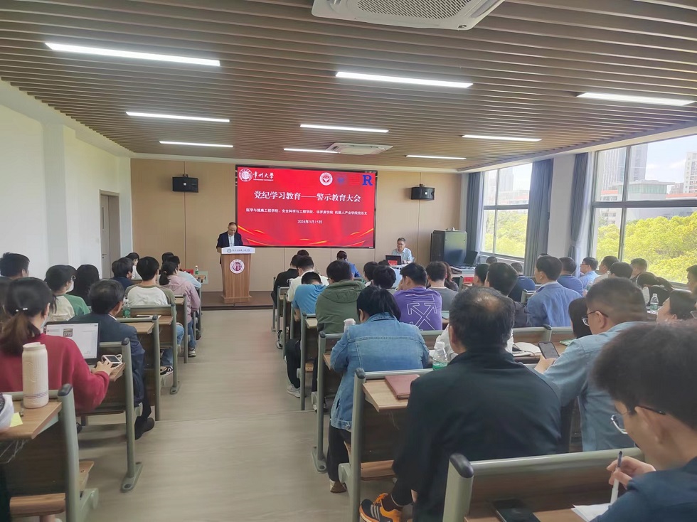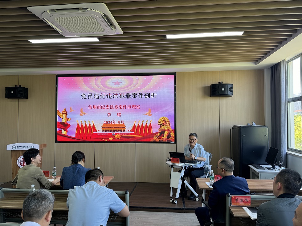 为高质量推动党纪学习教育落地见效,提高党员干部拒腐防变能力,强化党员干部的廉洁自律意识。5月15日下午,色情直播 机器人产业学院党总支联合医学与健康工程学院党总支、安全科学与工程学院党总支开展党纪学习教育专题辅导。活动邀请常州市纪委监委案件审理室主任李耀做《党员违纪违法犯罪案件剖析》专题报告。三个党总支全体教工党员及部分学生党员参加活动,活动由医学与健康工程学院党总支书记张继延主持。