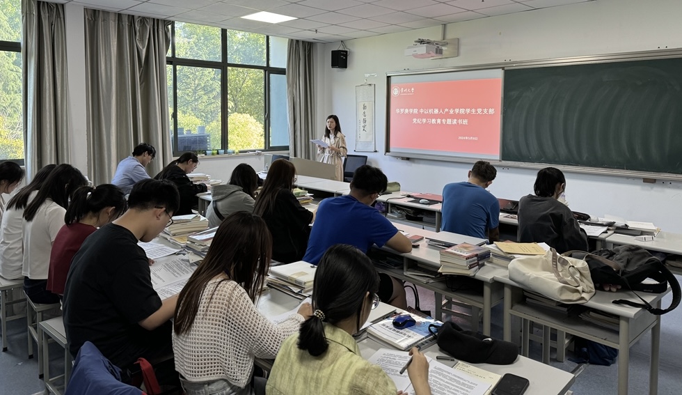 为推动学生党员增强纪律规矩意识,促使党员明规矩、存戒惧、守底线,5月15日下午,色情直播 机器人产业学院学生党支部在逸夫楼307教室开展《中国共产党纪律处分条例》集体研学活动,进一步教育引导党员提高思想认识。