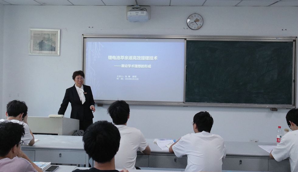 张琳教授以王阳明心学为切入点,介绍了自己学术理想形成及实践的过程,讲解了工业生产中锂电池萃余液高效提锂技术的实现步骤,着重讲解了该技术中最核心的4个过程:蒸发结晶、冷却结晶、自旋约束、碳化,并分析了其中的关系。最后,张琳教授以学生与老师、家长之间的多维关系为例,让同学们懂得从利他的角度去思考和做事,最终实现自我价值升华。