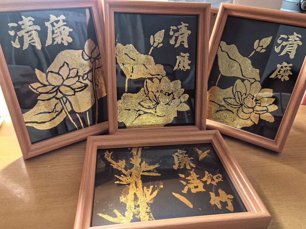 在非遗手工制作活动中,同学们通过剪纸、折纸、烧箔画等形式,将清廉理念具象化。其中莲花、竹子等具象征意义的图案备受好评。活动中,大家不仅体验了非遗手工制作的乐趣,更深刻理解了弘扬清正廉洁之风的重要性。制作结束,同学们一一展示了自己的作品并分享了心得体会,作品既展现了同学们的手工技艺,又传递了大家对廉洁文化的理解。同学们在感受传统艺术魅力的同时,也上了一堂生动的廉洁文化教育课。