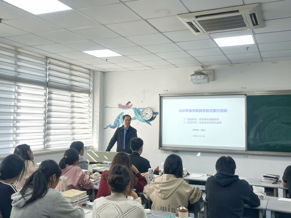 为拓宽学生的专业知识视野,促进深入了解药学领域的前沿发展动态,11月14日上午,学院特邀药学院陈新教授为华院241班全体学生作专题讲座。