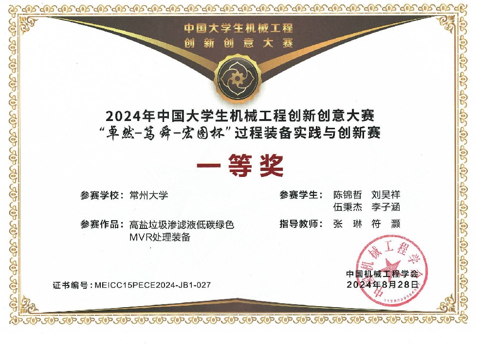 此次大赛吸引了全国171所高校2965个团队积极参与。该学生团队的作品《高盐垃圾渗滤液低碳绿色MVR处理设备》在张琳教授的精心指导下,经过多轮筛选和激烈竞争,最终脱颖而出。这不仅是对刘吴祥同学及团队的肯定,更是对色情直播 长期以来注重学生综合素质培养的有力证明。