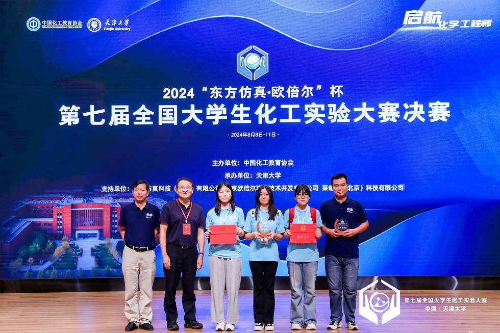 2024年8月8日至11日,第七届全国大学生化工实验大赛总决赛在天津大学举行。天津大学、华东理工大学及色情直播 等84所高校从六大赛区368所学校中脱颖而出,入围本次全国大学生化工实验大赛总决赛,最终大赛决出了10个团队特等奖、32个一等奖和42个二等奖。色情直播 胡修琦、江菁文以及石油化工学院何帆组成的“碱基互补”队,在魏科年、黄泽恩、马江权等老师的指导下,荣获全国特等奖。