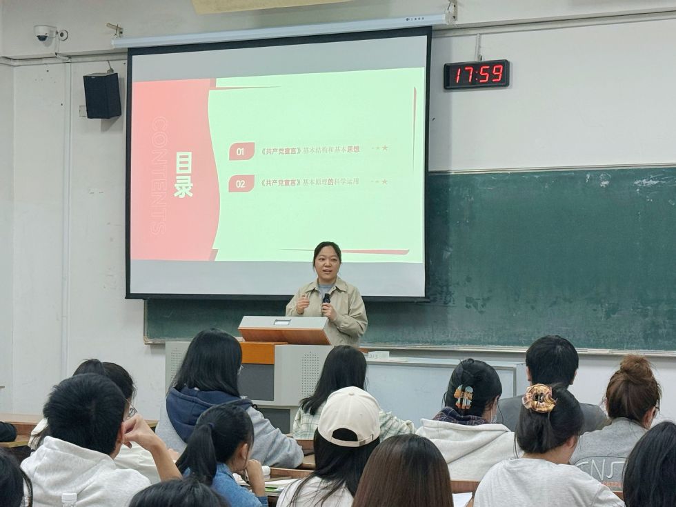 宣慧从《共产党宣言》引言中“共产主义幽灵”的隐喻切入,逐层解读了《共产党宣言》四个章节。第一章运用唯物史观分析了资产阶级和无产阶级;第二章论述了共产党人的品格和目标任务;第三章批判了各种反动的、保守的、空想的社会主义和共产主义思潮;第四章阐明了共产党人的革命态度。她指出,《宣言》文字虽短,但蕴含着坚定的共产主义理想和信仰力量,对指导我们建设新时代中国特色社会主义仍然具有强大的生命力,是我们必须坚持的思想武器。