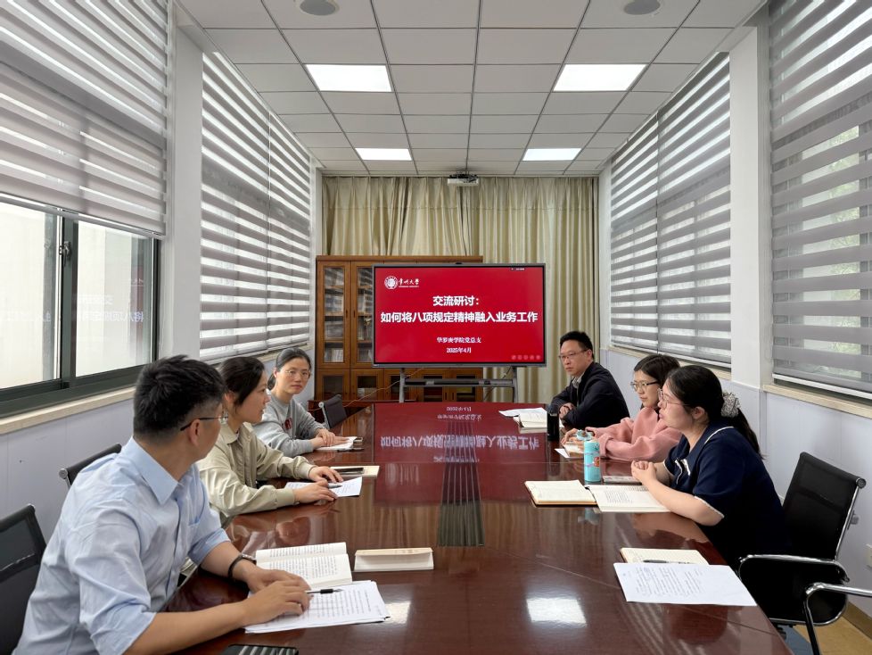 在交流研讨环节,全体党员干部紧密结合岗位职责,围绕“如何将八项规定精神融入业务工作”展开讨论,就学生学术生态诚信建设﹑艰苦奋斗育人实践﹑深入一线调研和解决师生急难愁盼问题等方面提出工作思路和具体举措。与会同志一致表示,要坚持问题导向,把“严”的标准贯穿管理、学术、育人全链条,以风清气正的政治生态保障学院高质量发展。