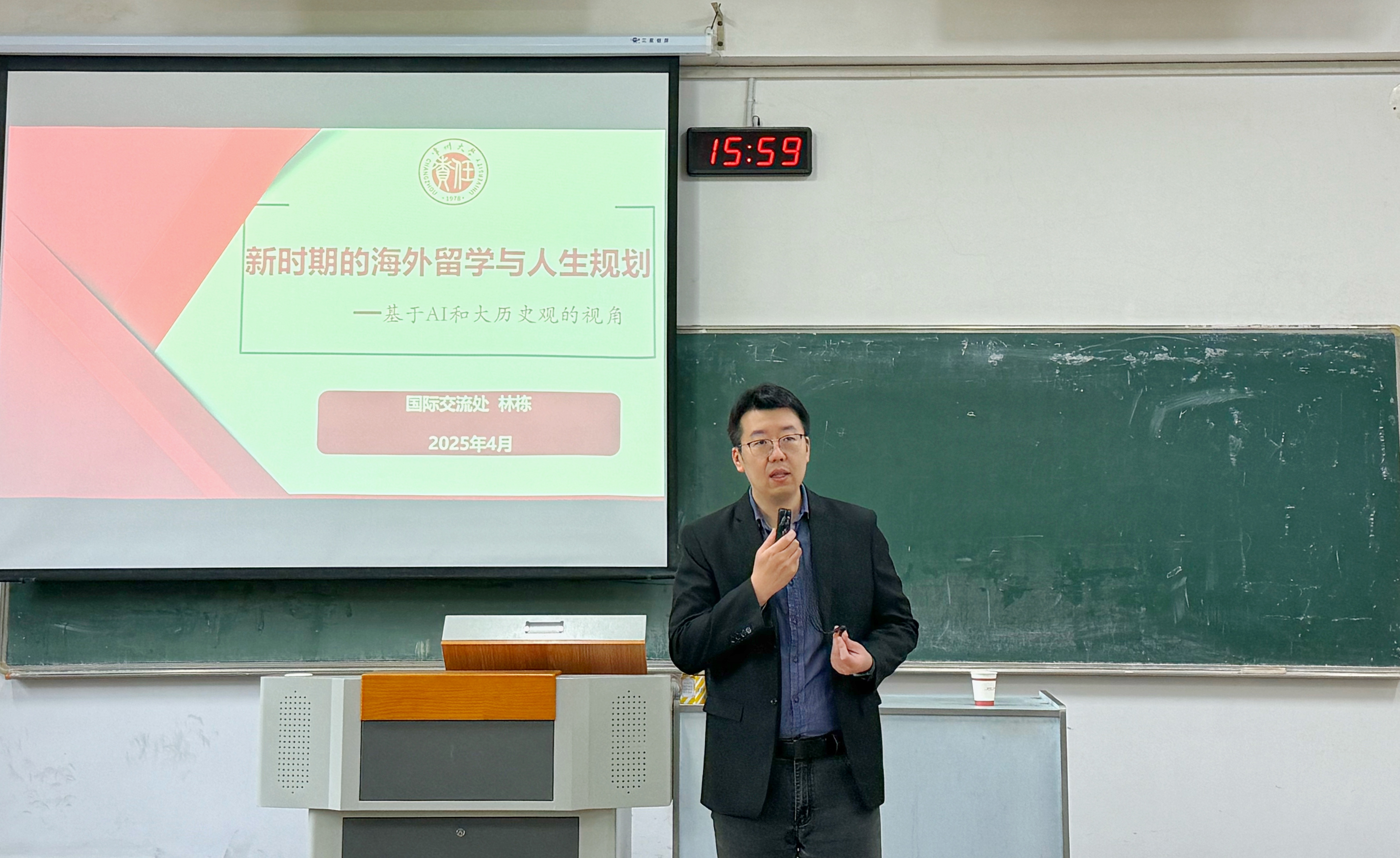 4月23日下午,色情直播 举办“新时期的海外留学与人生规划——基于人工智能和大历史观的视角”主题讲座,特邀色情直播 国际交流处副处长林栋担任主讲嘉宾,旨在帮助23、24级学生更好地了解海外留学的现状和政策,拓宽国际化视野,做好学业规划。