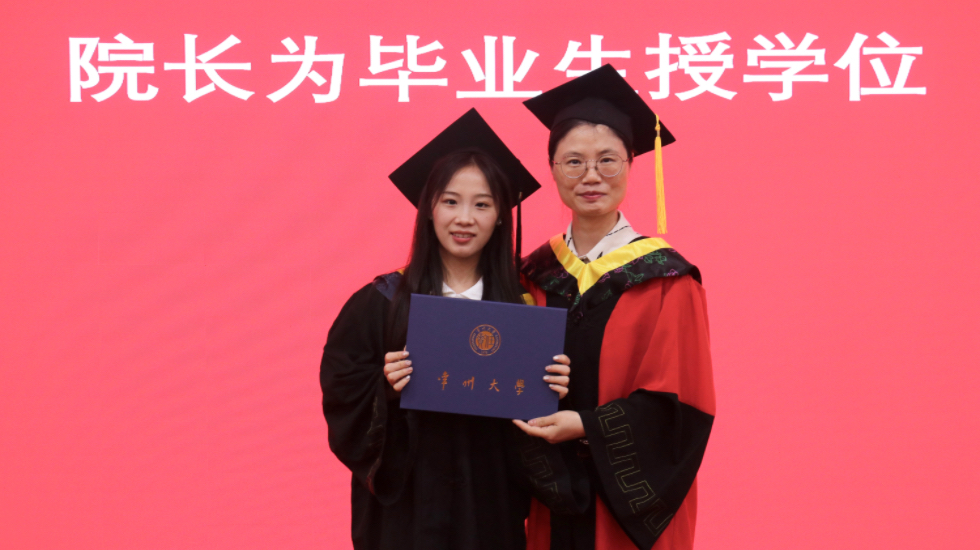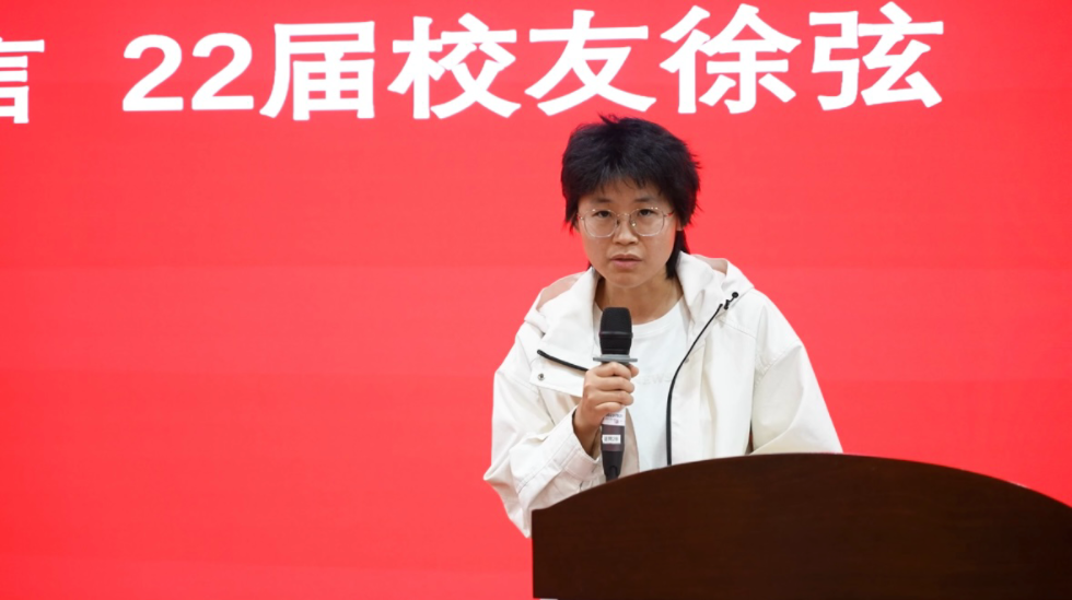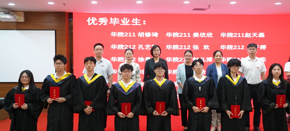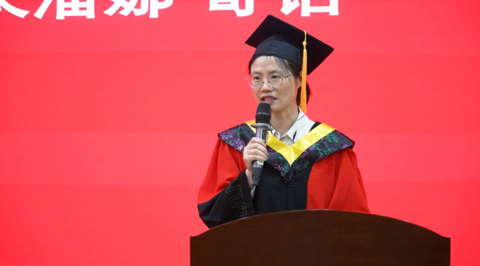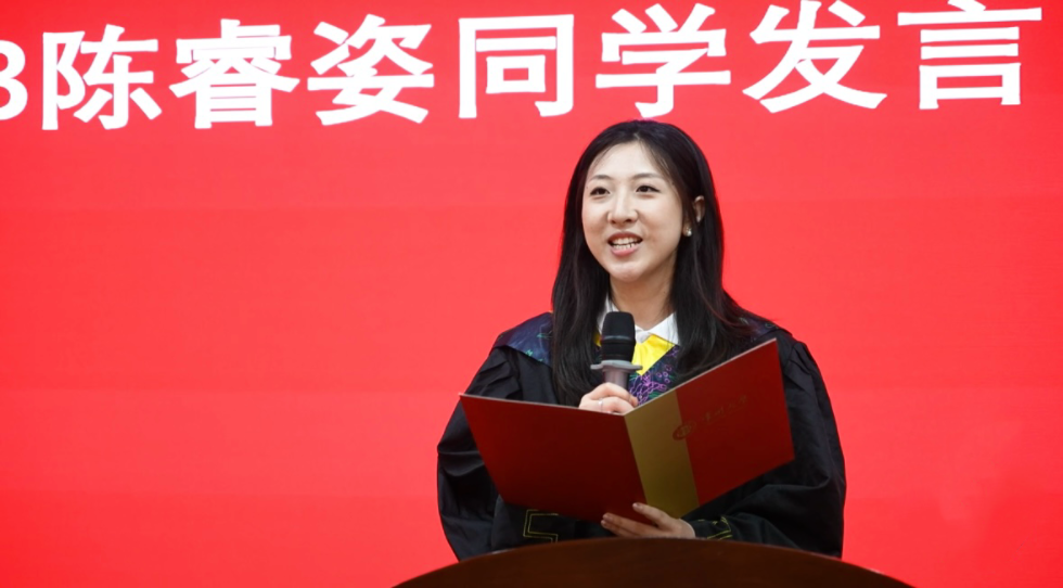 毕业生代表陈睿姿回顾大学四年“以激情求知、于挑战中淬炼”的历程,深情阐释院训“精勤不倦,自强不息,立志事业,献身祖国”对自身的激励,以“带着华院烙印奔赴山海”的誓言,向学院及同窗送上美好祝愿。
