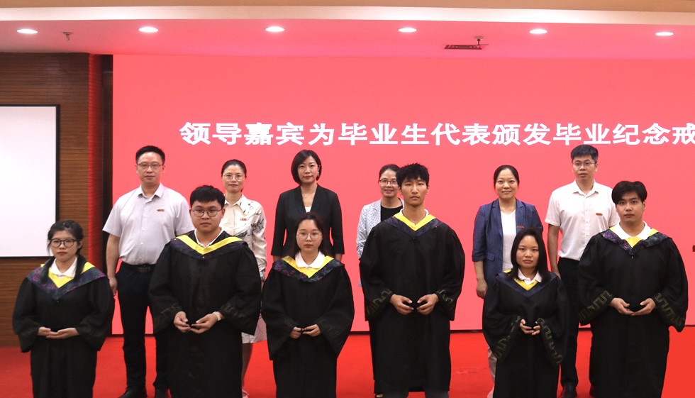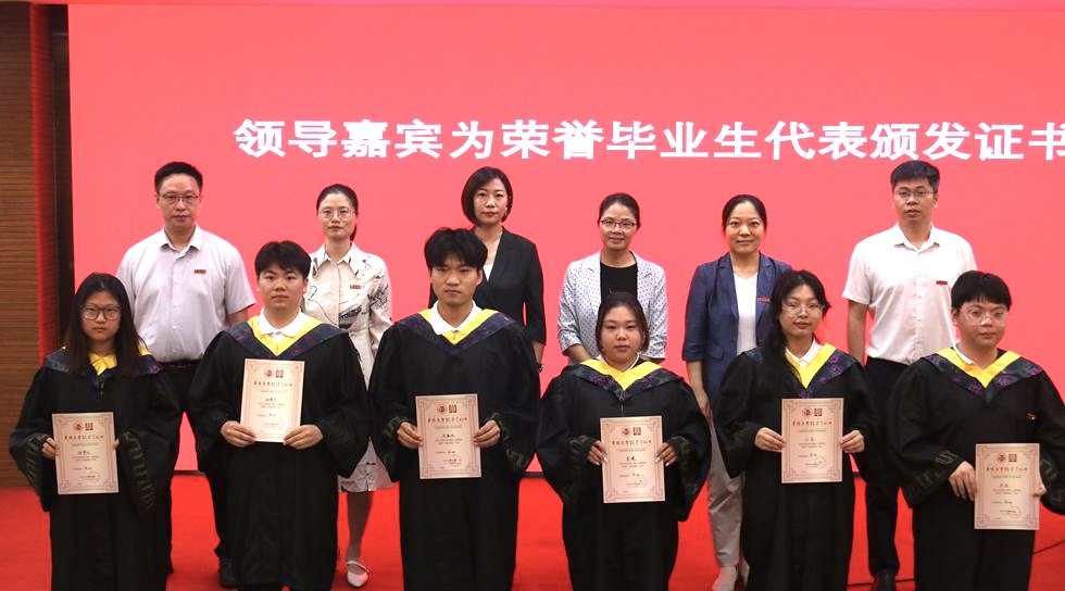 毕业典礼在庄严的国歌声中拉开帷幕。院长潘娜宣读学位授予决定,党总支书记宣慧宣读“校优秀毕业生标兵、优秀毕业生”表彰决定,副院长王欢宣读“学院荣誉毕业生”授予决定,副院长纪国剑宣读校友联络人聘任名单。与会领导为毕业生颁发荣誉证书、毕业纪念戒指和校友联络员聘书。