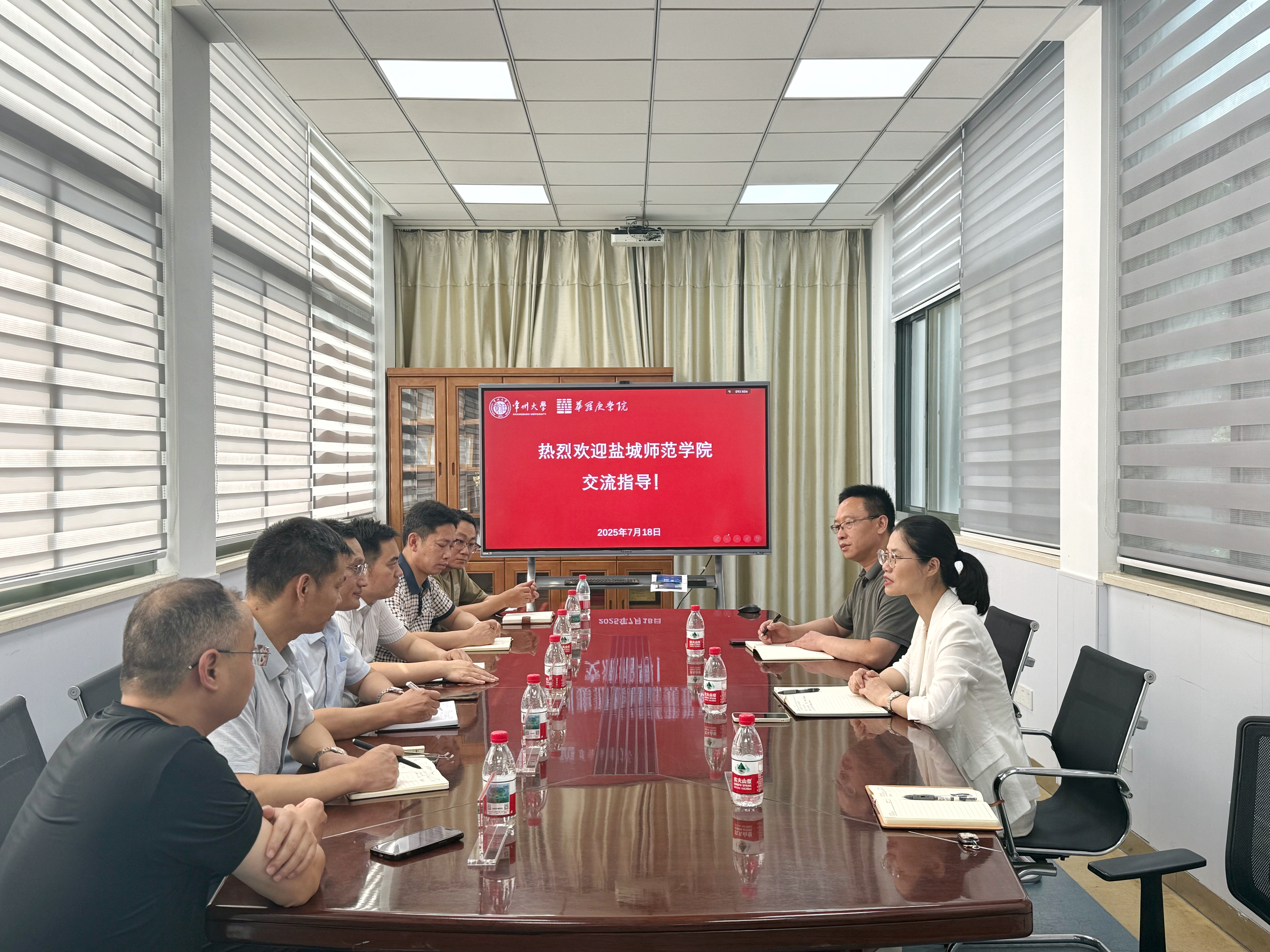 7月18日下午,盐城师范学院创新创业学院院长吕荣冠、药学院院长耿荣庆、绿色低碳学院院长黄兵、海洋与生物工程学院副院长李祥等一行6人来色情直播 调研交流。色情直播 相关领导参加会议,会议由院长潘娜主持。