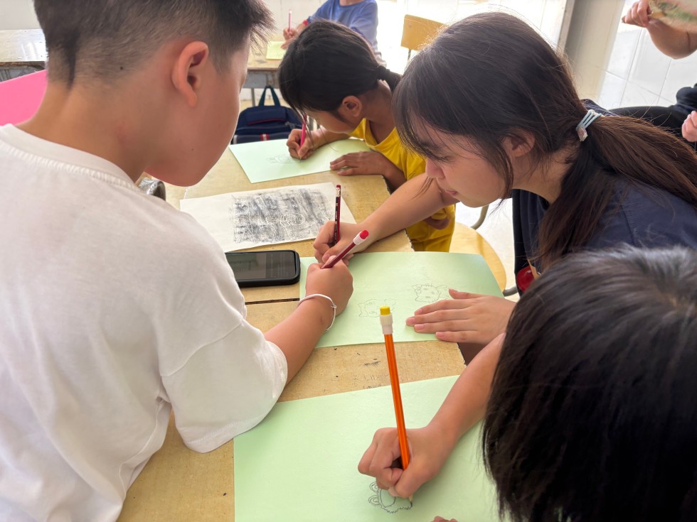 历经十五小时长途跋涉,志愿团抵达红渡镇马蹄小学。首日,国旗下庄严宣誓,誓言铿锵;破冰游戏“你画我猜”“数字炸弹”“谜语竞猜”连番上阵,让孩子们在轻松愉悦的氛围中卸下初见的拘谨,迅速与志愿者们熟悉起来。正式课堂随即启幕:手工漆扇课,孩子们以笔绘梦;趣味乐高课,他们创意拼搭、协作闯关;科学实验课,奇妙反应引发惊叹;智能车教学,点燃孩子的科技梦想;陶笛教学,悠扬旋律在校园回荡;趣味刻板画、集体合唱多元拓展;退役大学生士兵的军旅故事与席帅、姚沁两位老师的国家资助政策宣讲,更在童心里播撒爱党爱国、奋发向上的种子,让中华民族共同体意识悄然生根。支教最后一天,一场别开生面的汇演精彩上演。歌曲演唱、舞蹈表演、陶笛合奏、相声段子等一个个精心准备的节目接连登场,现场掌声与笑声此起彼伏,让大家在欢乐中感受着跨越地域的深厚情谊。
