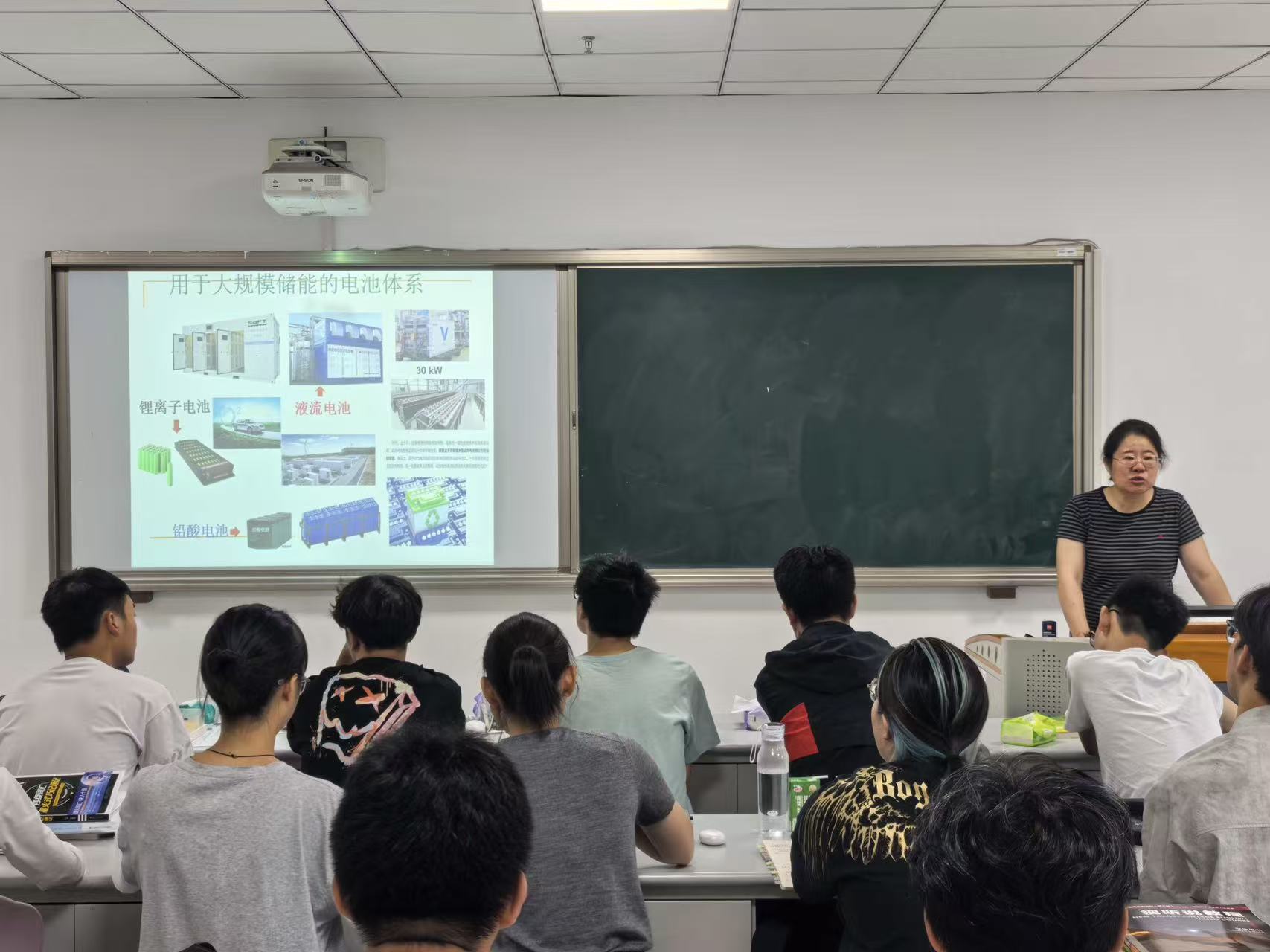 许教授从电池的基本原理讲起,系统梳理了电池技术的发展脉络--从“摇椅式电池”概念的提出,到如今各类电池技术的迭代演进,让同学们对电池技术的发展历程有了宏观认识。她结合自身研究方向和实例,重点介绍三元材料为核心的锂流电池的性能、成本和安全性。她指出化学学科正朝着绿色化、高效化、安全化方向迈进,而这一发展趋势也将引领未来电池在结构设计上更加多元、种类更加丰富,为电池技术突破指明了方向。讲座现场气氛活跃,同学们对专业了解有了更深的认识。