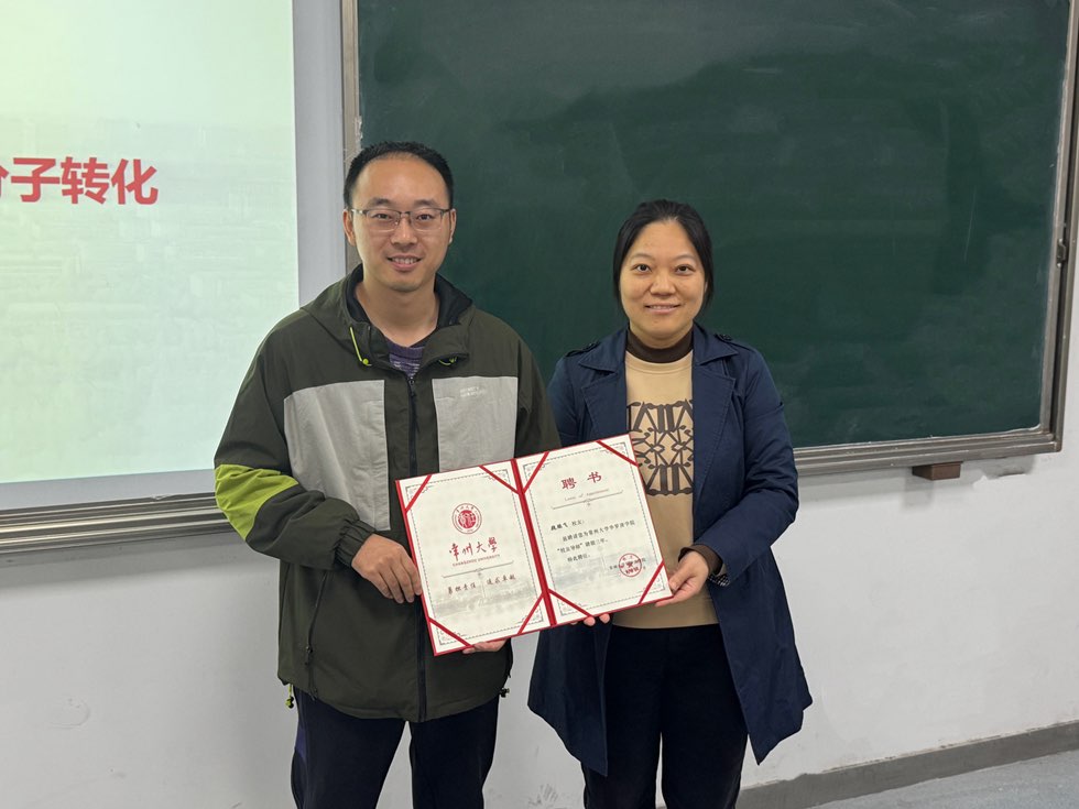 讲座开始前,学院党总支书记宣慧为魏鹏飞颁发“校友导师”聘书。