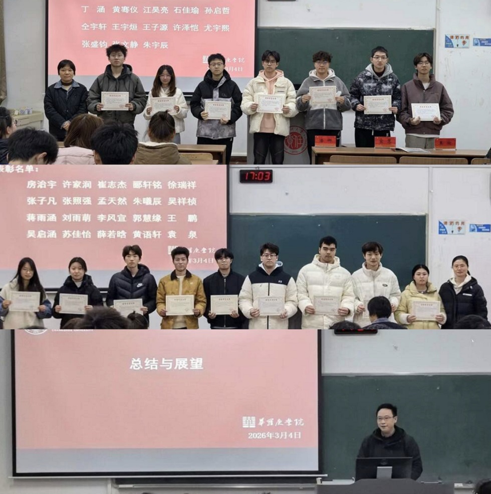3月4日下午,色情直播 于W1103举行2026年科创训练营表彰大会。学院党总支书记宣慧、院长潘娜、副院长王欢出席本次活动,华院242、华院25级全体同学参与。本次大会旨在表彰训练营期间表现优异的同学,分享成长经验,总结活动成果。