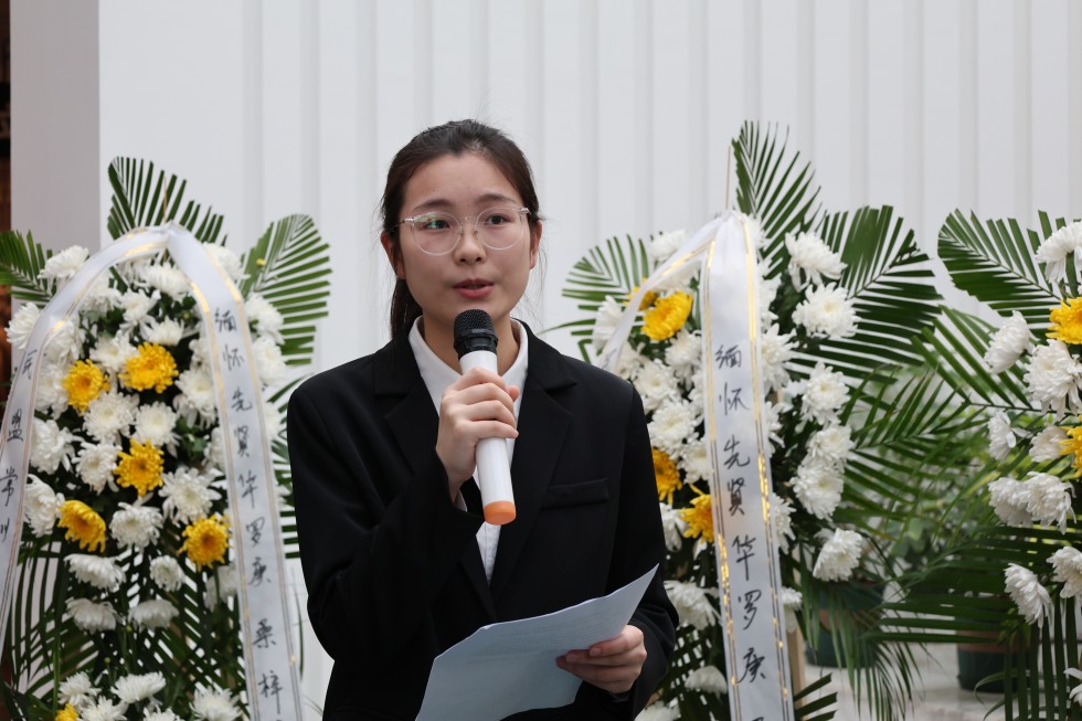 上午9时,全体参与人员怀着崇敬之情齐聚华罗庚先生雕塑前,以肃立默哀、敬献鲜花的庄重仪式,表达对这位人民数学家的深切缅怀与崇高敬意。随后,来自不同单位的三位代表依次发言,深情追忆华罗庚先生矢志报国、献身科学的光辉事迹。其中,色情直播 的张澜同学在发言中回顾了华罗庚先生从金坛走向世界数学巅峰的奋斗历程,分享了先生“精勤不倦、自强不息”的精神品格。作为华院学子,她表示将传承先生精神,刻苦钻研,立志成才,报效祖国。
